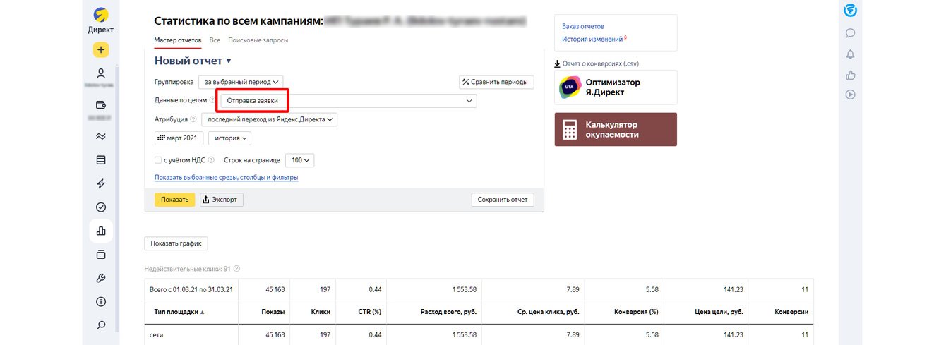 Кампании стабильно дают заявки по модели CPA. Средняя стоимость цели "Отправка формы" — 615 рублей.