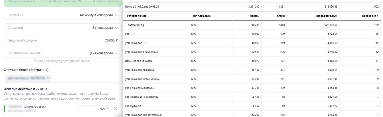 С 15 ноября 2023 года перешли на модель CPA ("Оплата за конверсии").Больше всего конверсий дал автотаргетинг.