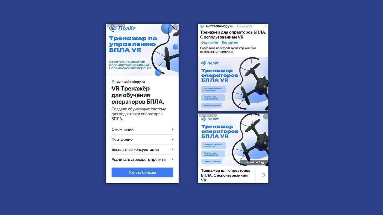 Решение: у AVM Technology уже был реализованный кейс по обучению управлению БПЛА, и когда мы оформили его на сайте отдельной страницей, увидели, что это особенно пользуется спросом.