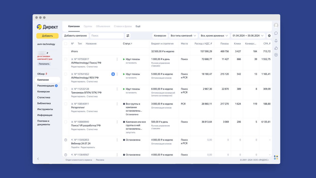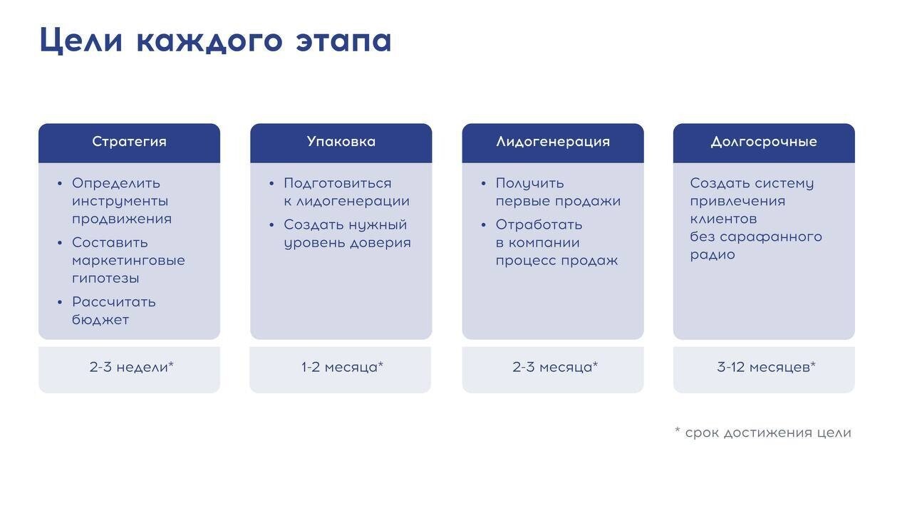 Мы в бюро такое не любим, потому что клиент не готов ждать результата месяцами. В итоге ещё на этапе переговоров с AVM Technology озвучили, что будем быстро тестировать разные гипотезы, чтобы на практике здесь и сейчас оставляя только те инструменты и каналы, которые работают.