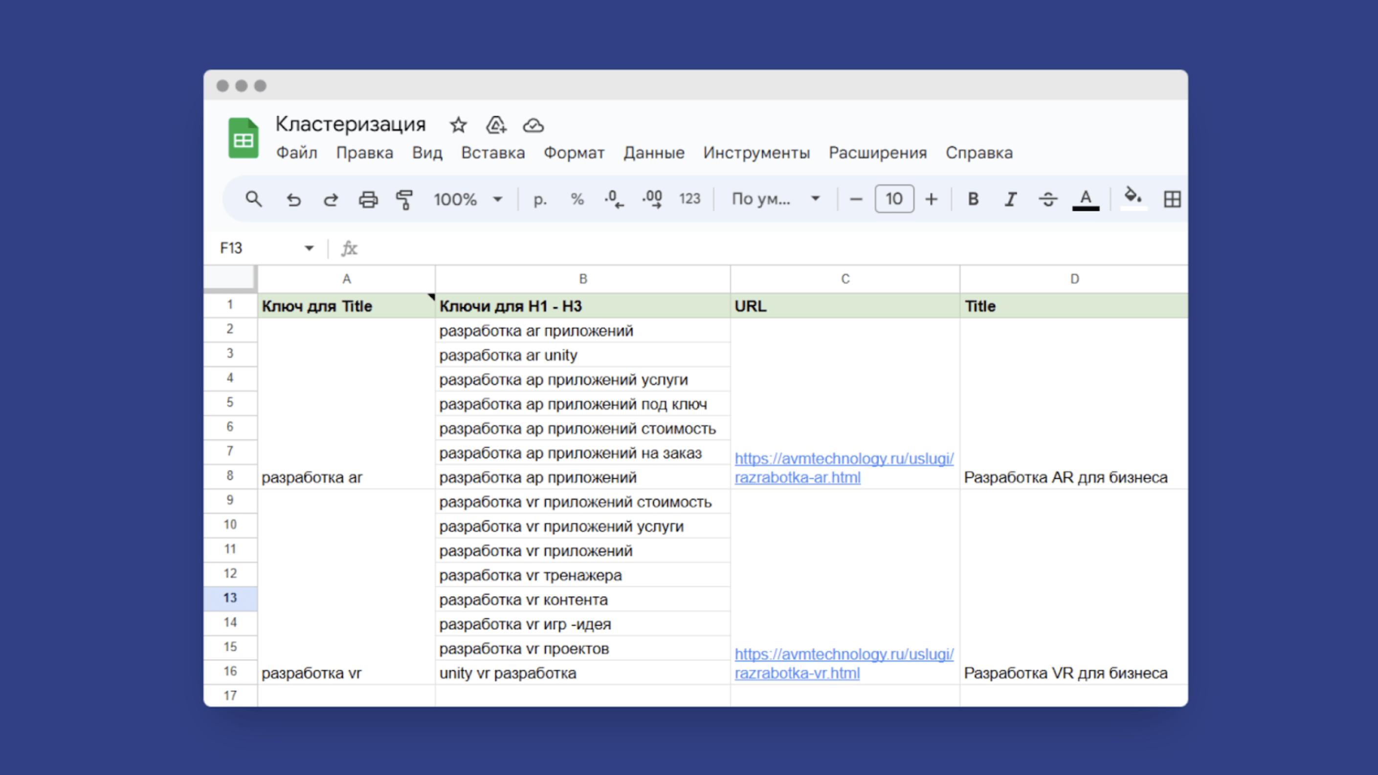 Таблица семантического ядра