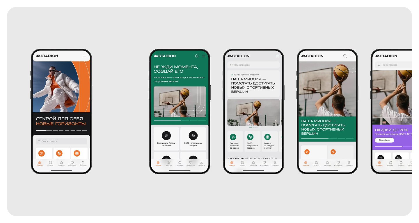При разработке дизайн концепции использовали подход Mobile First. Согласно исследованию компании Adindex, 79% пользователей в России делают покупки при помощи смартфонов.
