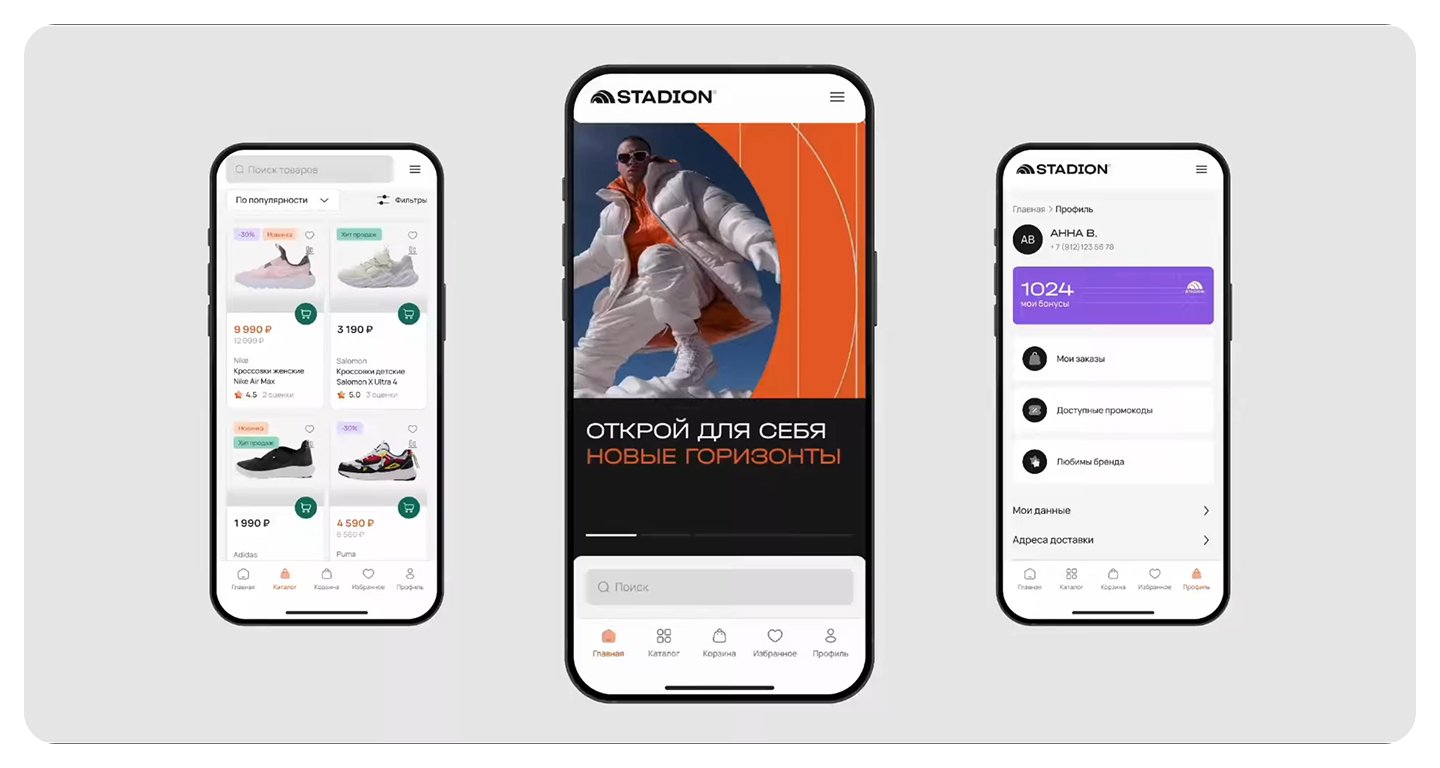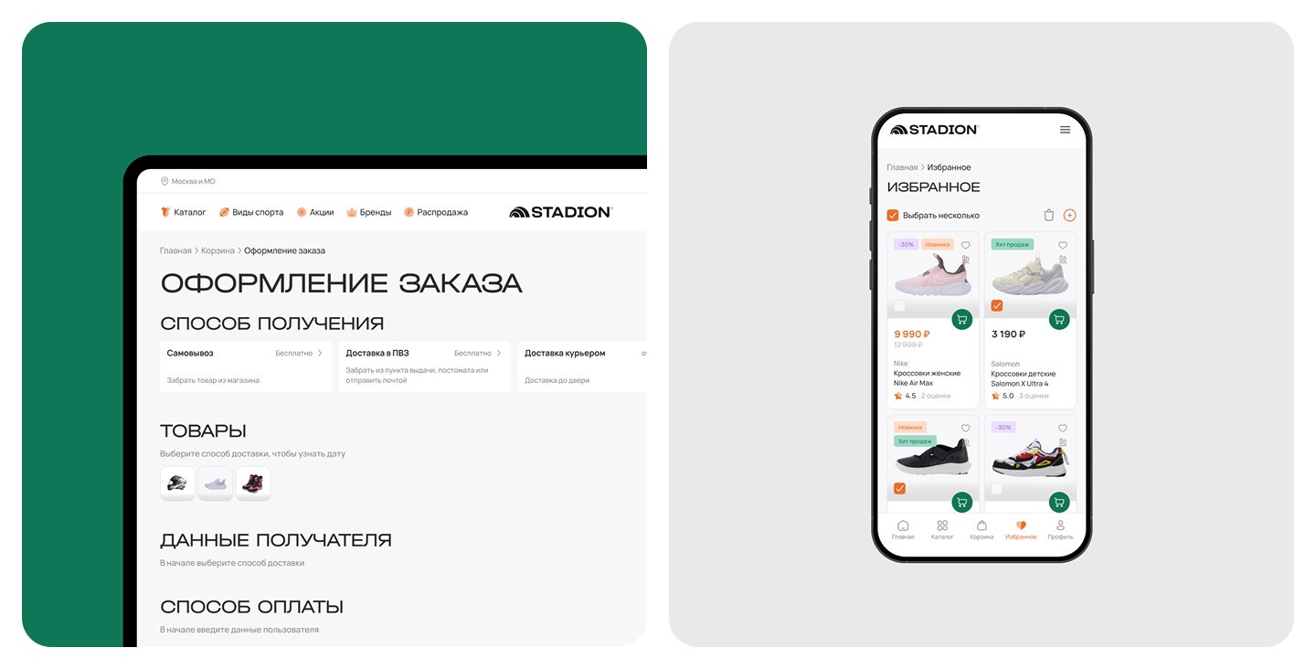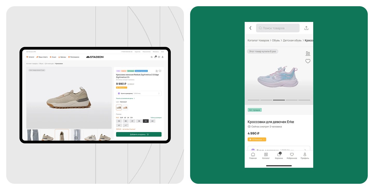 Мы собрали лучшие практики других крупных торговых сетей, чтобы объединить их в данном проекте. Дизайн, функционал, скорость работы, связки с ключевыми сервисами учета товара, финансов, маркетинговой аналитики — всё это мы начали реализовывать в интернет-магазине Стадион ПРО.
