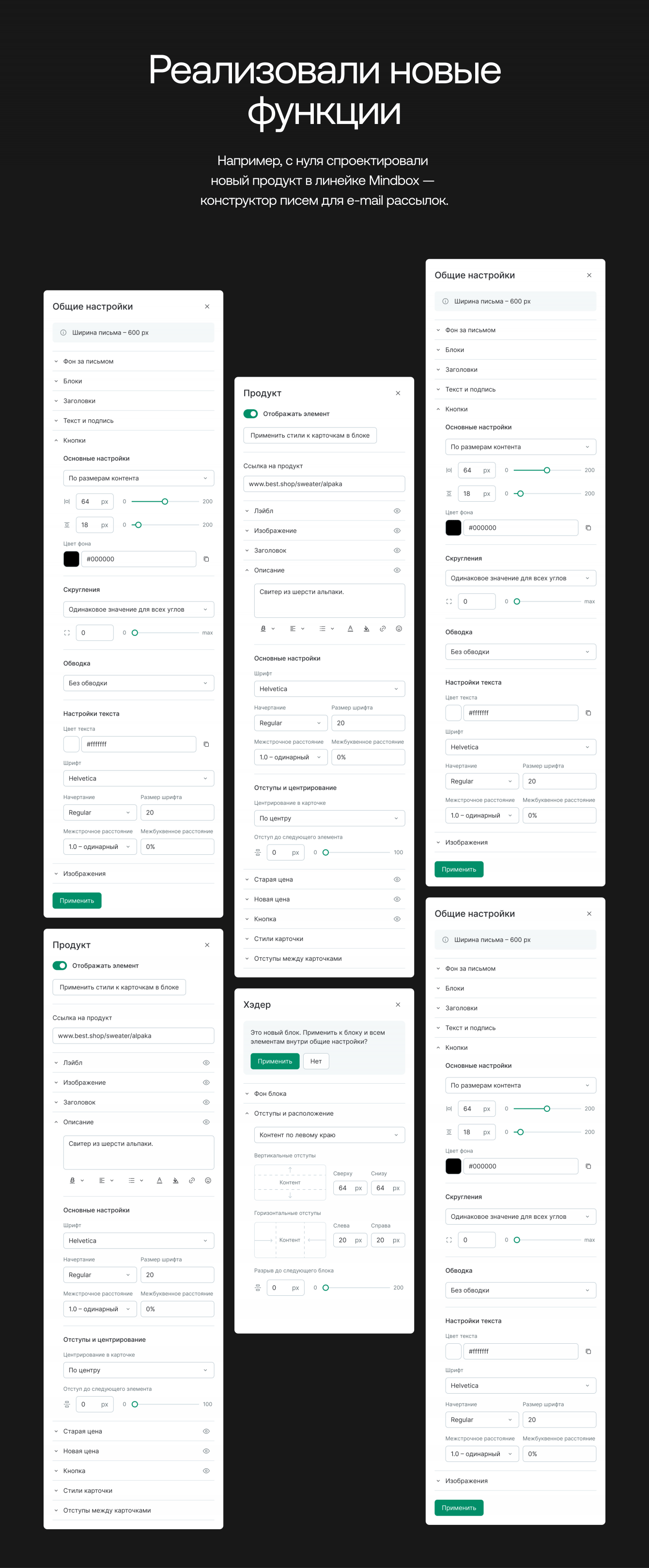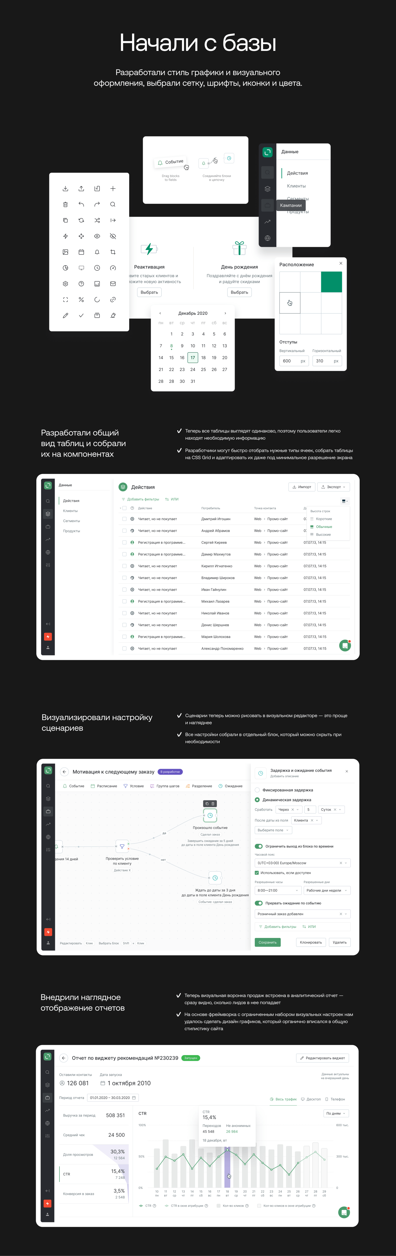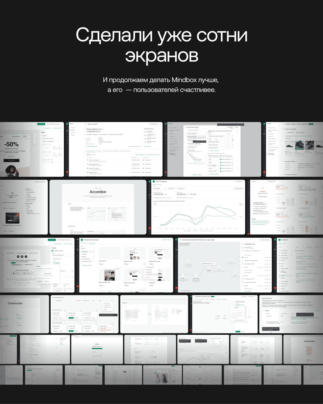 Мы начали с редизайна одного раздела и хорошо себя показали. Тогда сооснователь проекта Адександр Горник доверил нам стратегическую задачу — заняться обновлением всех продуктов Mindbox и полностью взять на себя дизайн-процессы в продуктовой команде.