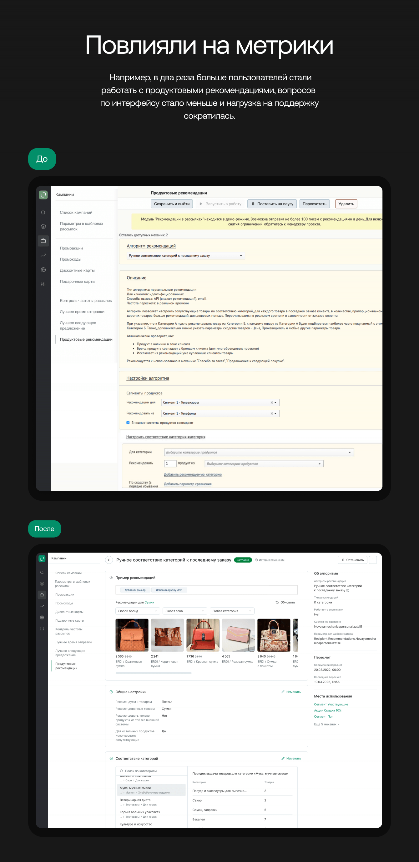 До прихода дизайнеров из Луча внешним видом продукта занималась команда разработки. Пользовательские сценарии прорабатывались недостаточно, похожие задачи решались по-разному в разных частях продукта. Постоянно появлялись новые функции, но общая логика не складывалась. Из-за этого пользователям было сложно работать с платформой, и нагрузка на поддержку была высокой.