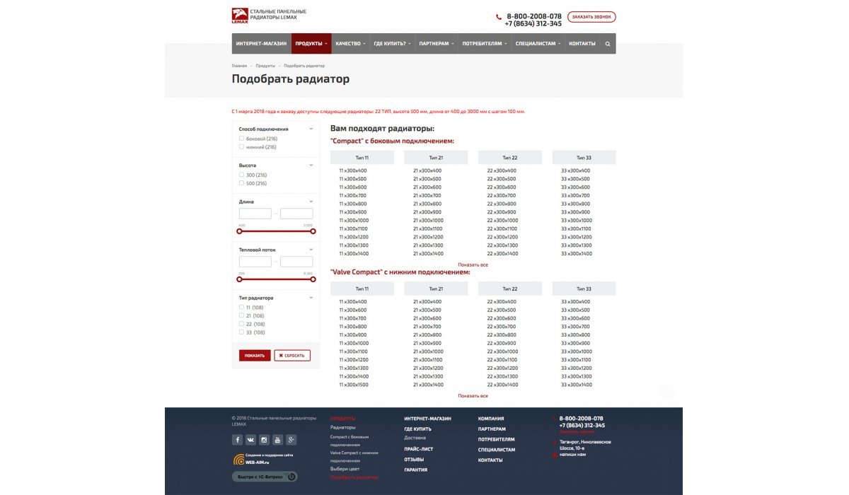 Полный кейс: https://web-aim.ru/projects/portfolio-template-stores/lemax-rediator/