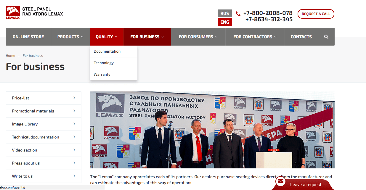 Над проектом одновременно трудились наши сотрудники и сотрудники заказчика (за что им огромное спасибо). В этом творческом тандеме родился сайт завода панельных радиаторов. Заказчик подготовил контент – описания, фотографии, видео.