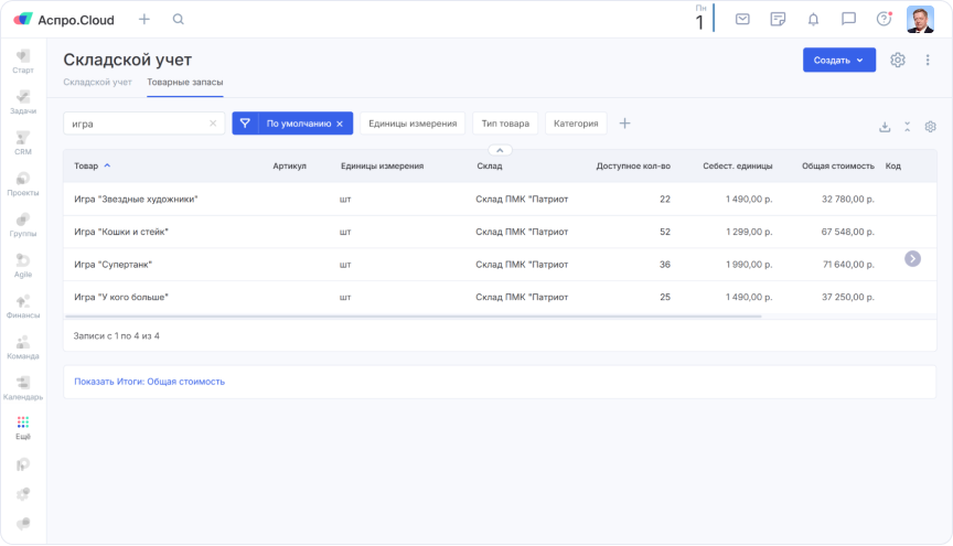 Критически важной задачей был контроль за целевыми товарами — адаптированными настольными играми. Чтобы отслеживать, сколько коробок поступило от издательств, сколько передано благополучателям и какой остаток на складе, команда внедрила модуль «Складской учет».