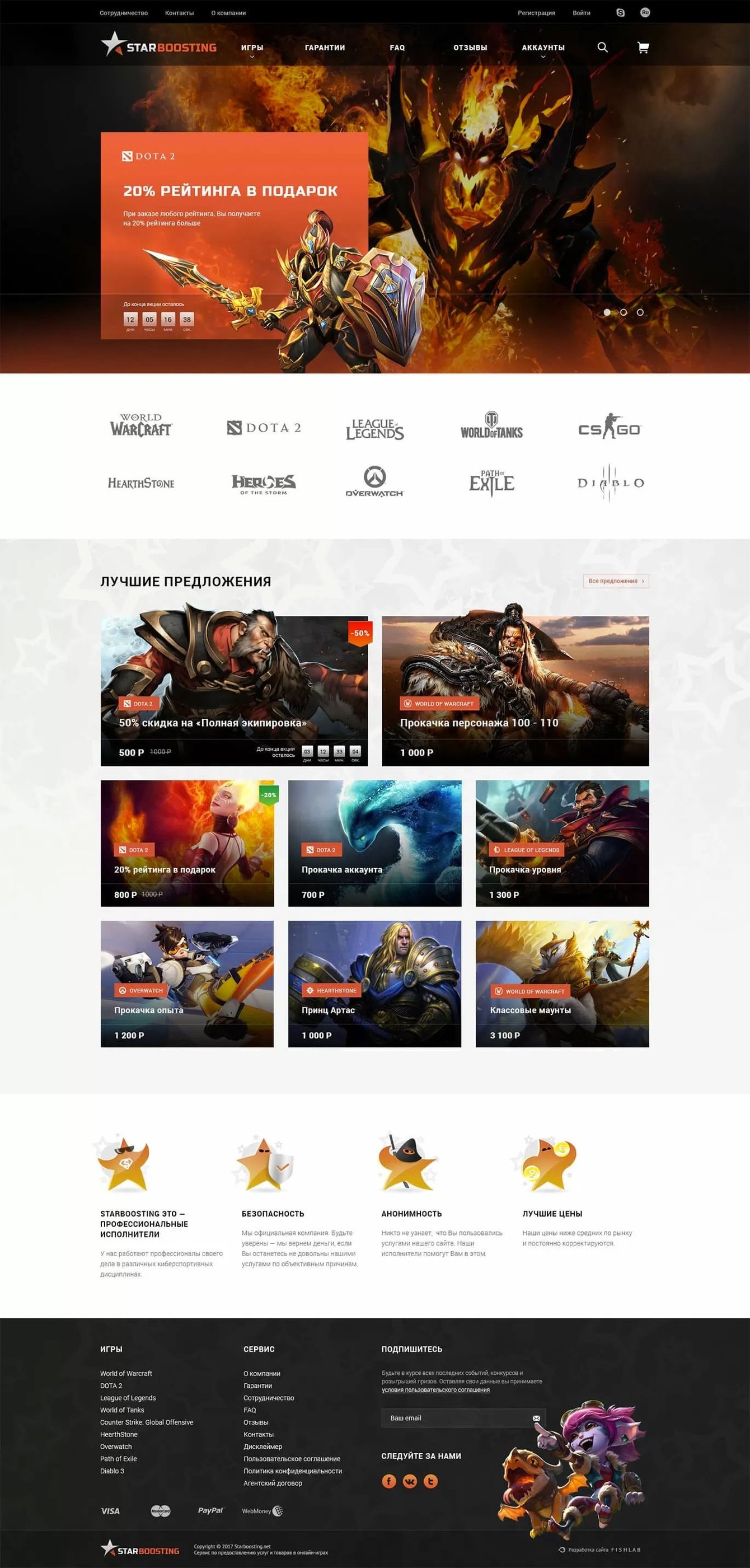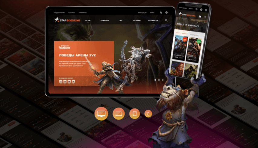 На основе бизнес-требований и пожеланий заказчика создан яркий визуальный стиль, раскрывающий суть игровой тематики и ассоциирующийся с игровыми интерфейсами. В дизайн гармонично встроено множество знакомых игровой аудитории игровых персонажей. Разработаны адаптивные версии для мобильных устройств.