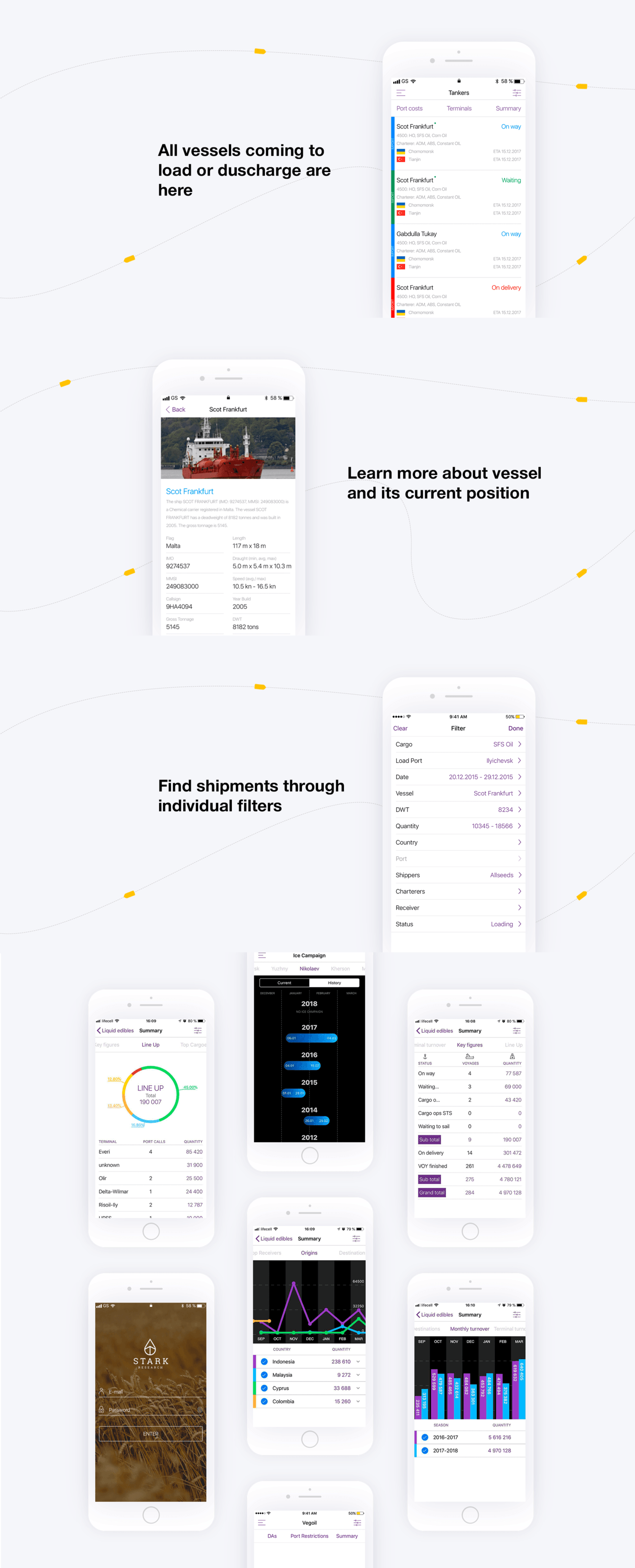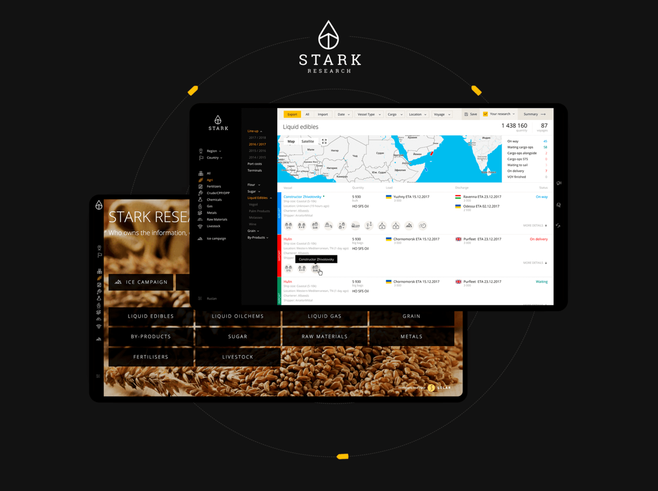 Stark Research — это сервис аналитики индустрии морских перевозок, в частности наливных (танкеры) и насыпных (балкеры) грузов. Целью проекта было собрать полезную информацию о всех известных в индустрии рейсах и построить ценную аналитику всей индустрии.
