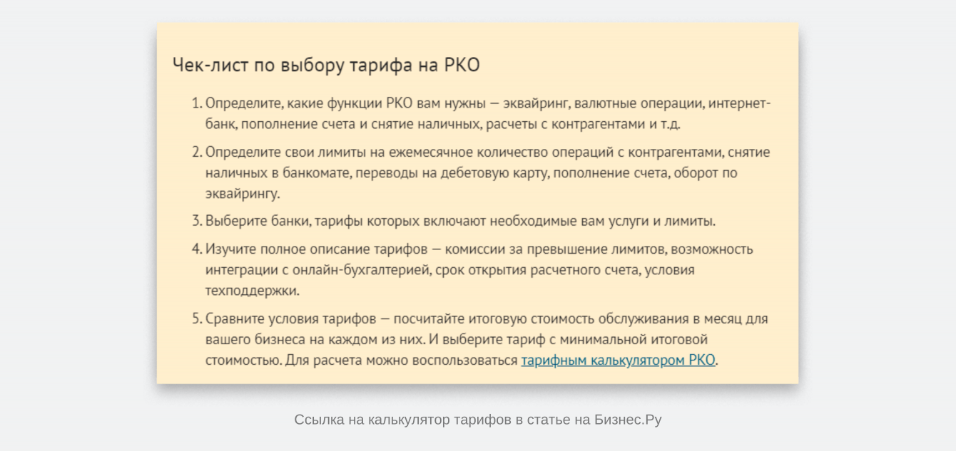 3. Чек-лист по выбору РКО — для Бизнес.Ру