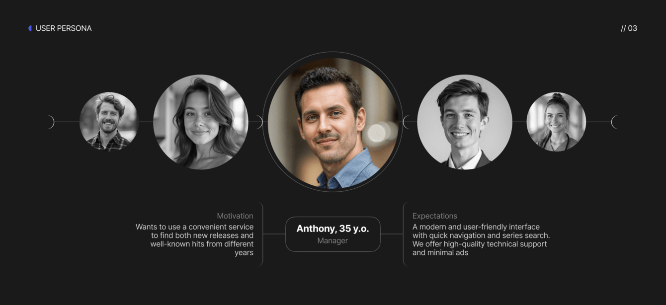 Разработать сервис для просмотра фильмов и сериалов для русскоязычной аудитории, который бы был простым и интуитивно понятным для пользователя, но имел свою уникальность, отличающую его от конкурентов.