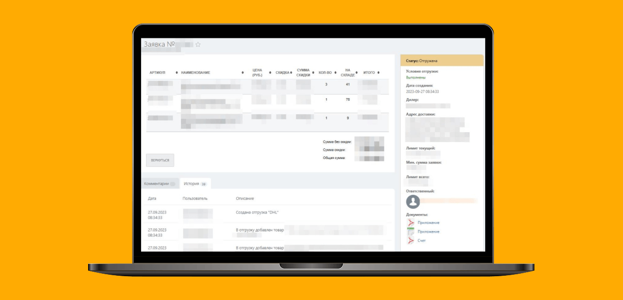- Информация в системе (например, цены и наличие продукции) обновляется в реальном времени, что значительно сокращает процессы коммуникации между сотрудниками и контрагентами.