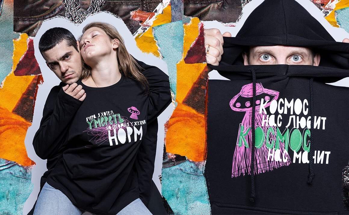 Креатив на стикерах настолько понравился бренду, что его использовали в дизайне мерча для закрытого премьерного показа.