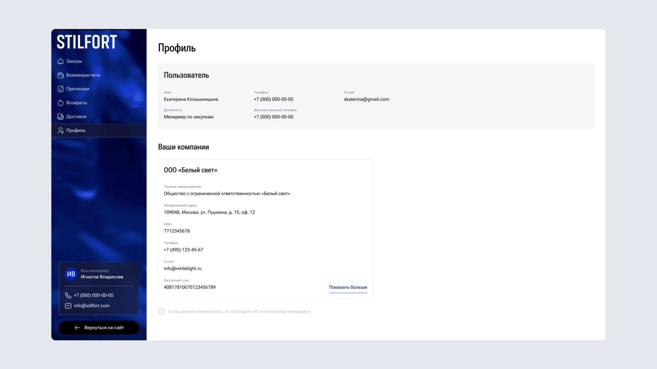 Одной из ключевых задач проекта стала разработка B2B-кабинета для оптовых клиентов компании.