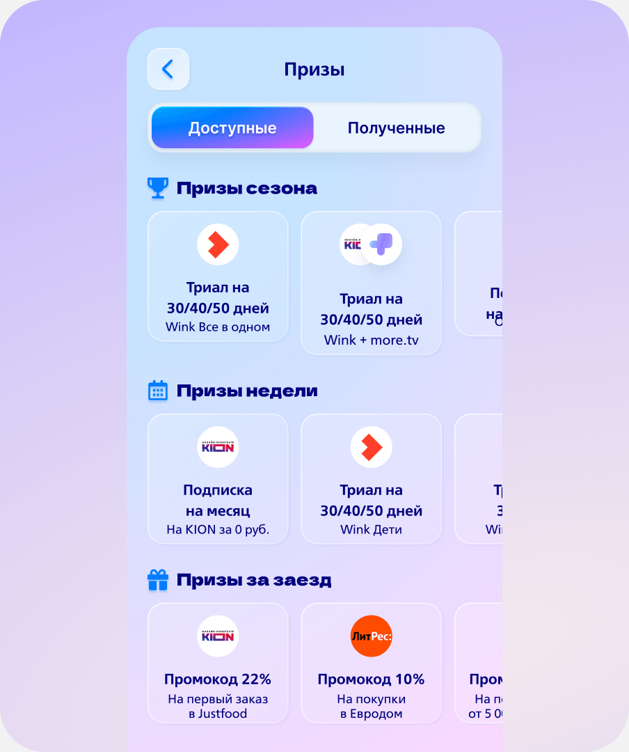 Игроки соревновались в двух рейтингах. По результатам еженедельного рейтинга лидеров ожидали денежные призы, сертификаты и промокоды партнеров. А в сезонном был шанс выиграть 1 000 000 рублей, заняв первое место, или получить от 25 000 рублей за место в ТОП-100.