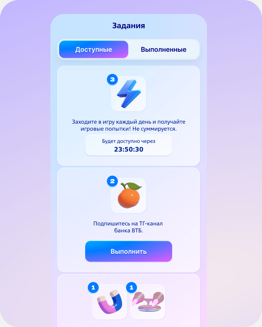 Например, за 2 730 очков открывался ВТБ-борд, 2 дополнительные попытки, 2 бустера «Магнит» и 2 бустера «Турбо двигатель».