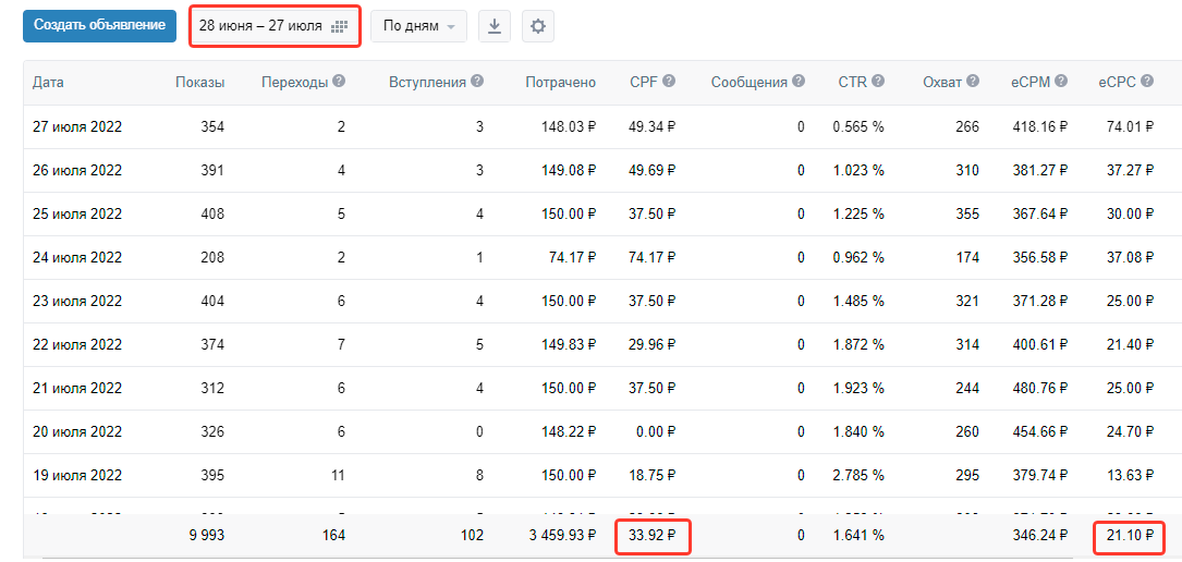 В эту рекламную кампанию мы вложили 25 310 рублей и получили, соответственно, 312 новых подписчиков в сообществе по 81 рублю каждый.