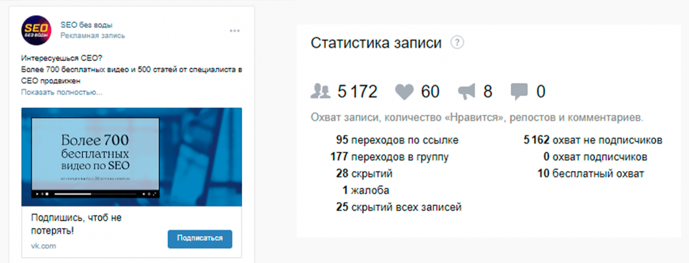 Чтобы уменьшить цену подписчика, а также увеличить и удешевить трафик на «SEO без воды», мы переоформили сообщество и изменили рекламную кампанию.