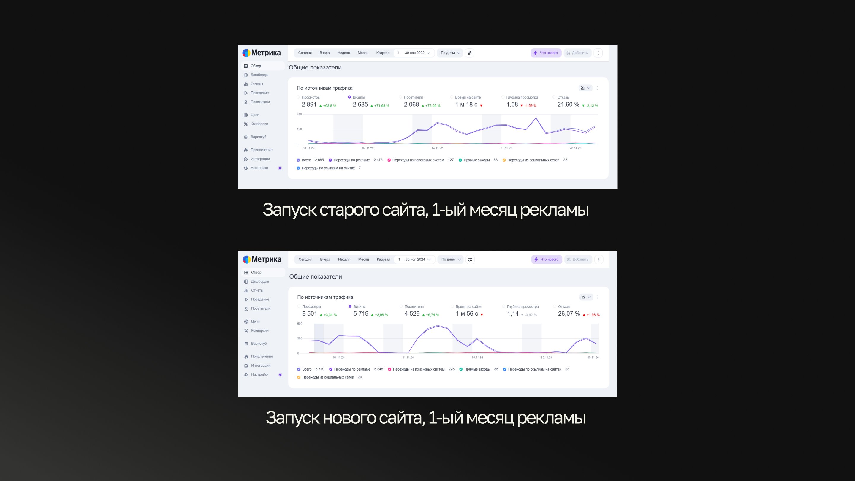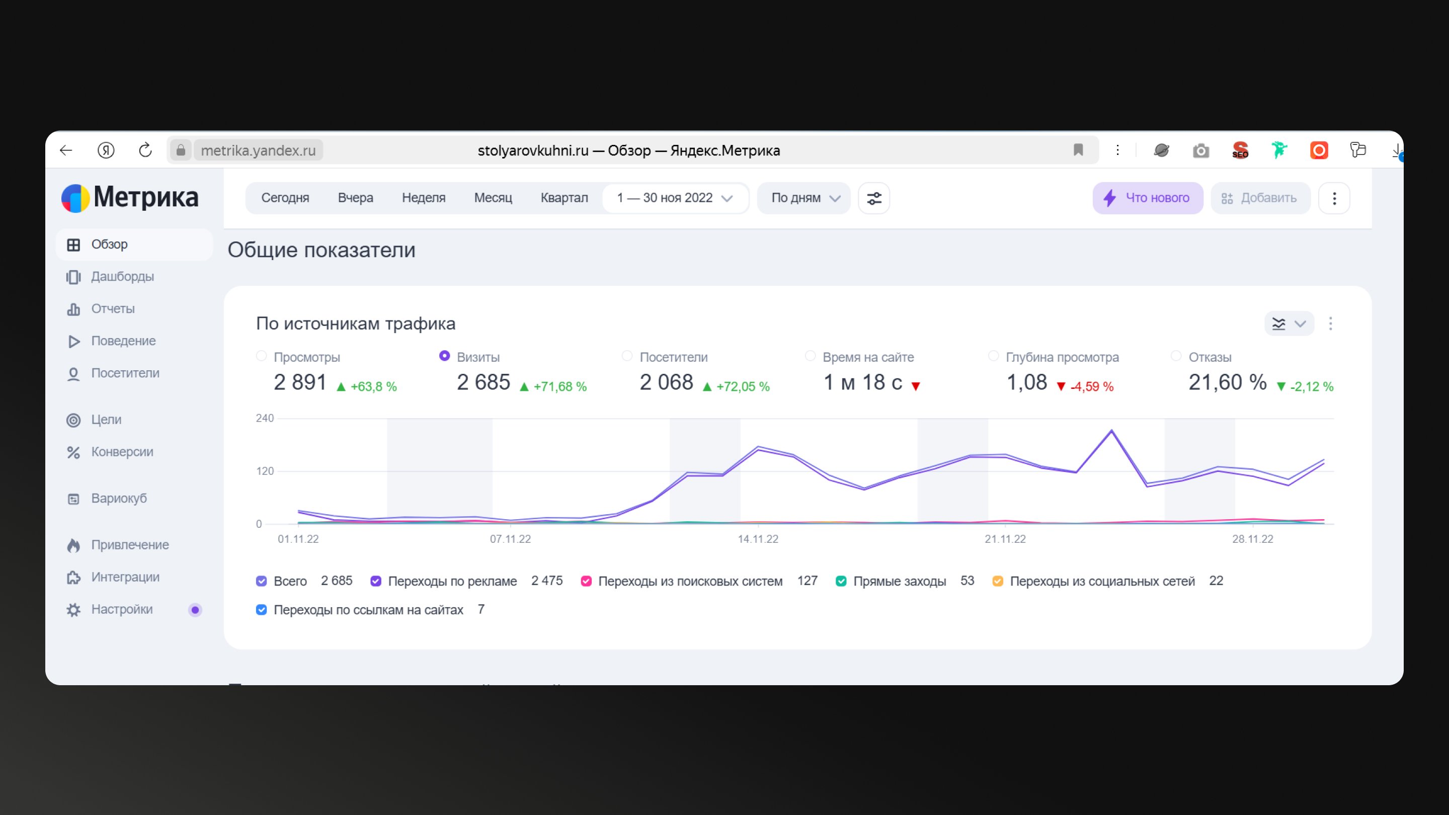 Спустя 2 месяца после запуска сайта «Столяров» вырос не только органический трафик, но и рекламный.