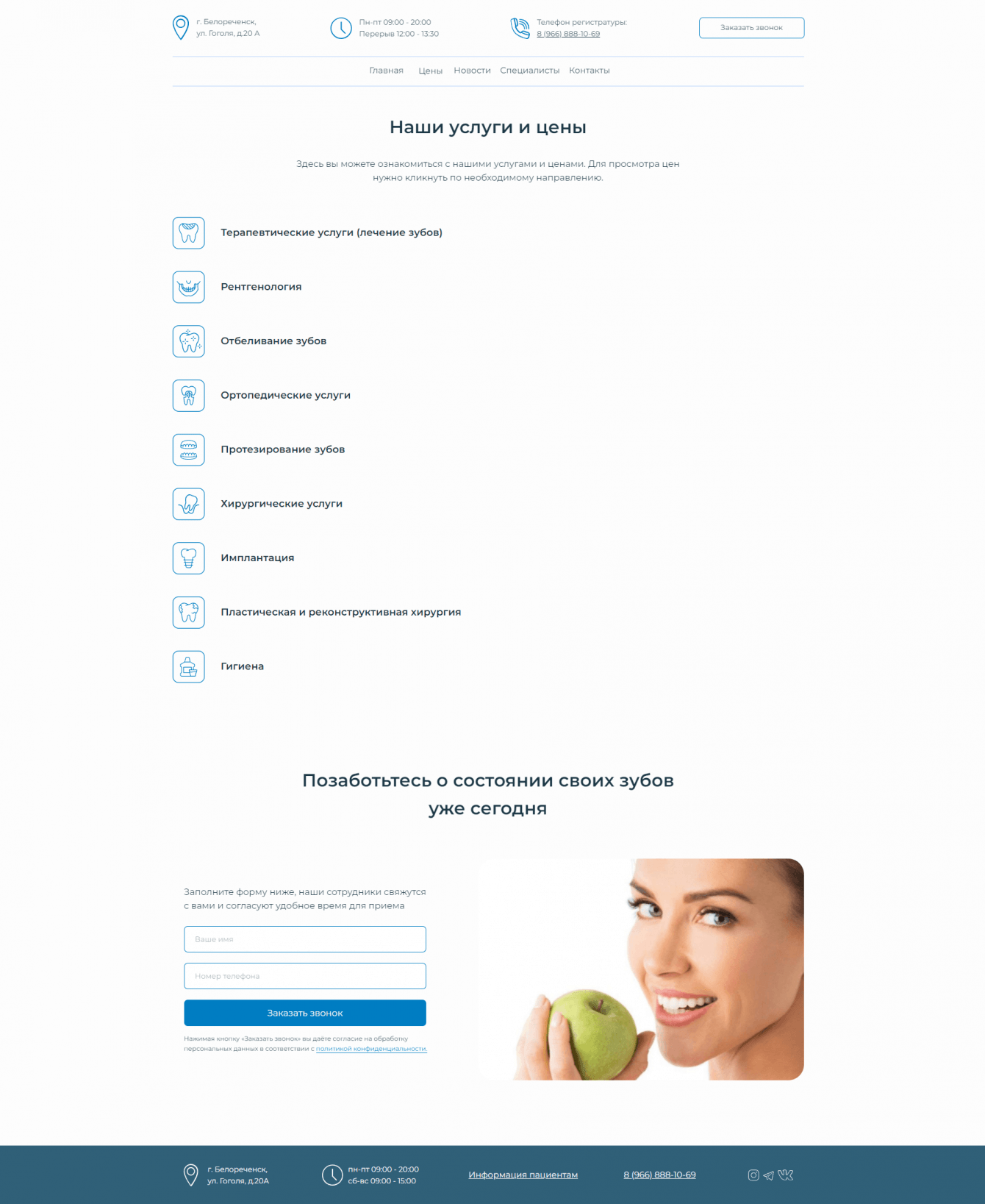 Задача: Создать современный, удобный и информативный сайт для стоматологической клиники Аврамова.