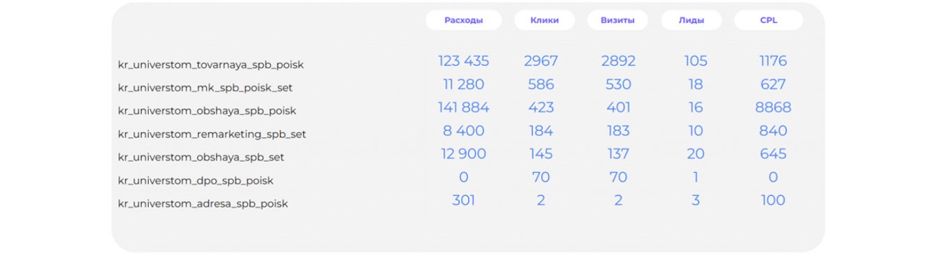 ● Провести стандартные оптимизационные действия по кампаниям. Приоритетную ставку мы сделали на наиболее конверсионные кампании и фразы;