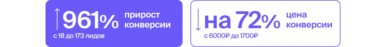 ● уменьшения стоимости конверсии на 72%: с 6000 рублей до ~1700 рублей.
