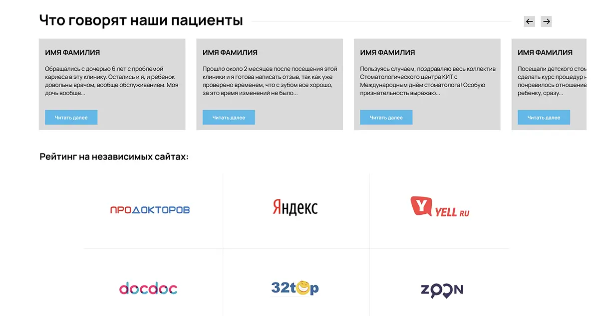 Написали SEO-ориентированные тексты с учетом E-A-T-факторов: для главной, услуг, блока о клинике, акций, FAQ, форм записи.