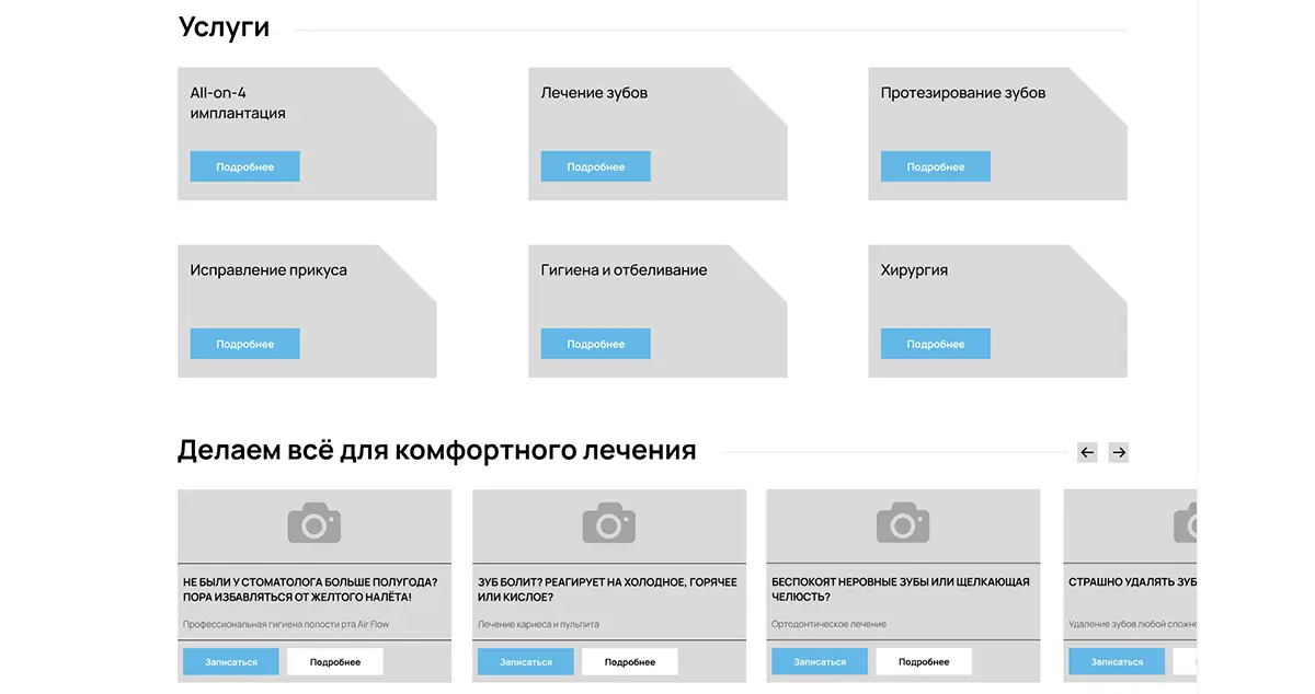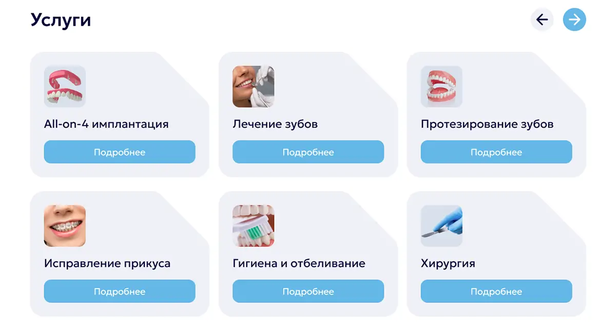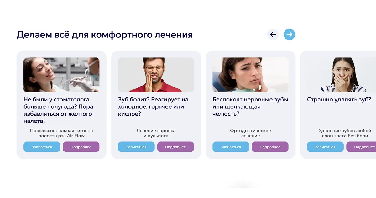 Стоматологическая клиника обратилась с задачей обновить устаревший сайт, который не отвечал потребностям целевой аудитории, не вызывал доверия и не был адаптирован под мобильные устройства. Новый сайт должен был стать полноценным маркетинговым инструментом — удобным, современным и способствующим записи на прием.