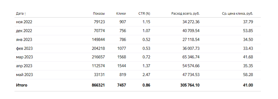 Итоговая статистика (данные взяты из аккаунтов Я.Директа и Я.Метрики):