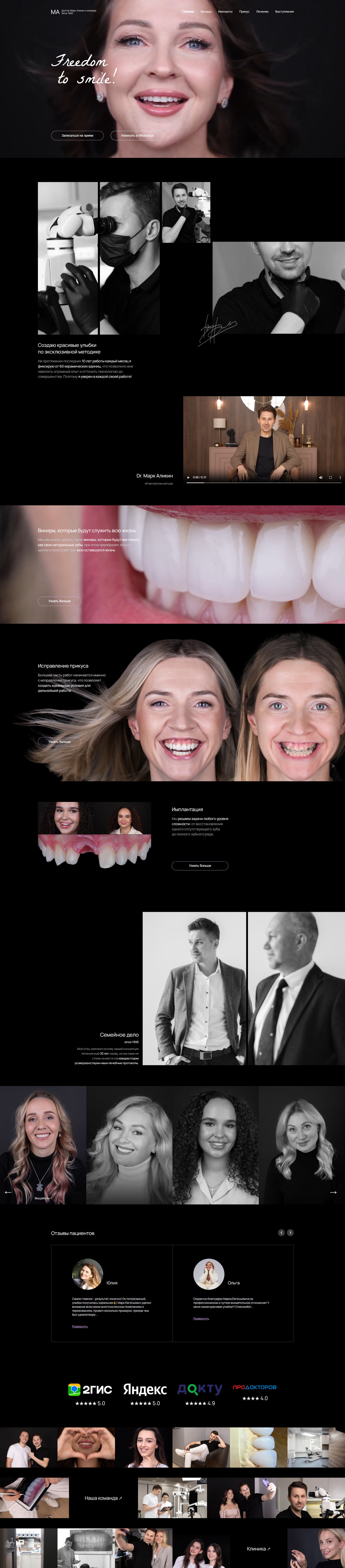 - Видеопрезентация клиники и история врачей.