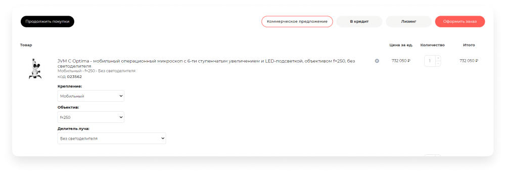 2. Если коммерческое предложение должно содержать несколько товаров, то менеджер добавляет их в корзину, как обычный заказ, а уже из чекаута по той же кнопке переходит в форму заполнения коммерческого предложения. Это очень удобно, так как все выбранные товары автоматически заполнятся в коммерческом предложении: с картинками, артикулами и выбранными характеристиками.