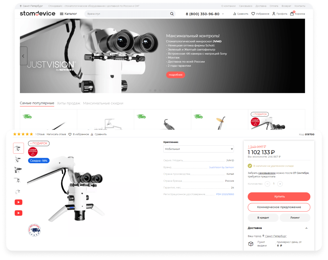 Так как сфера работы Stomdevice — это B2B, то не всегда покупатели просто добавляют в корзину нужные товары и самостоятельно оформляют заказы. Очень часто сделки совершаются вне интернет-магазина при личном участии менеджеров по продажам. Они лично созваниваются с представителями стоматологических клиник, подбирают для них наиболее подходящие товары, а затем заключают договоры на поставку.