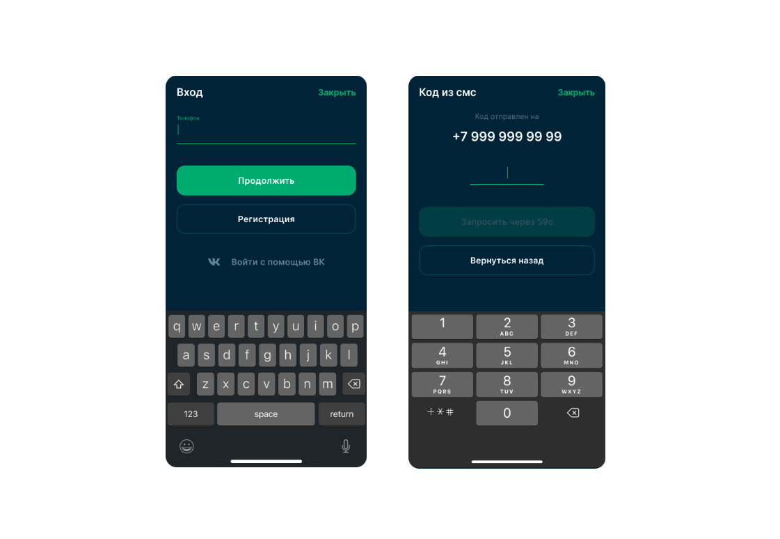 При первом открытии приложения пользователь попадает на главный экран. Если пользователь не авторизован, ему будет предложено сделать это с помощью автоматически всплывающего модального окна . Для входа пользователь вводит свой номер телефона после чего подтверждает его в соответствующем поле. При первом открытии приложения пользователь попадает на главный экран. Если пользователь не авторизован, ему будет предложено сделать это с помощью автоматически всплывающего модального окна . Для входа пользователь вводит свой номер телефона после чего подтверждает его в соответствующем поле