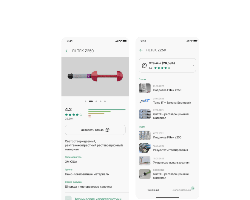 В результате мы получили приложение позволяющее стоматологам легче выбирать нужное оборудование, благодаря опыту других стоматологов.