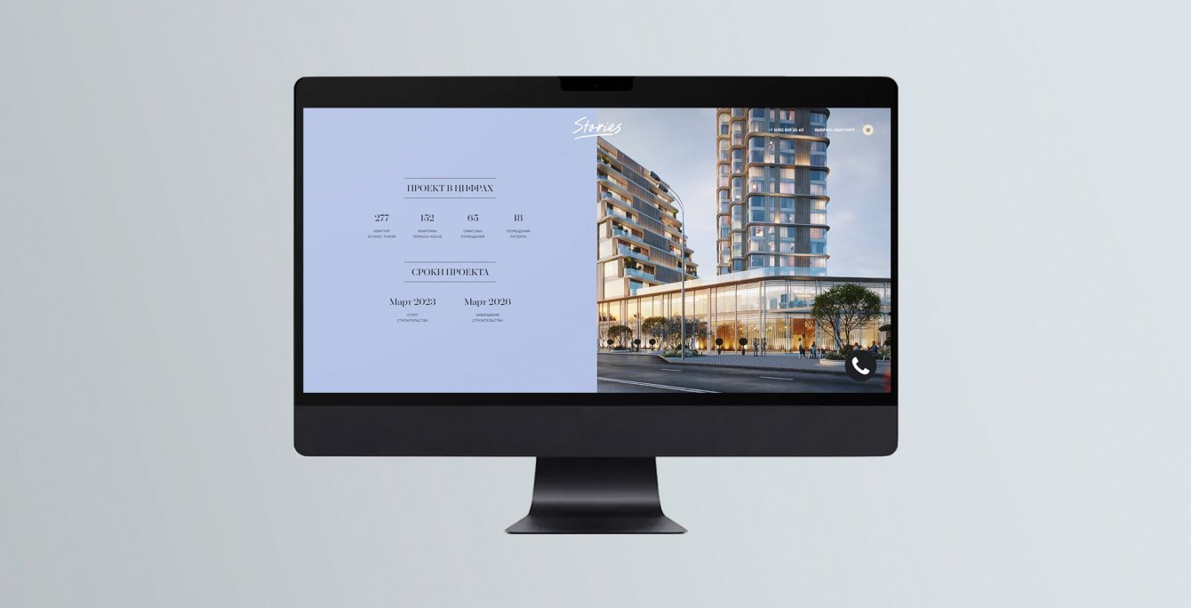 Концепция и подача сайта – ультра-интерактивный анимационный лендинг, который наглядно раскрывает объект и его преимущества.
