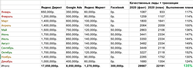 Этот шаг позволил отследить количество посетителей сайта с каждого ресурса, стоимость ведения рекламных кампаний и показатели эффективности (конверсия в транзакцию, стоимость транзакции, звонка и заказа).