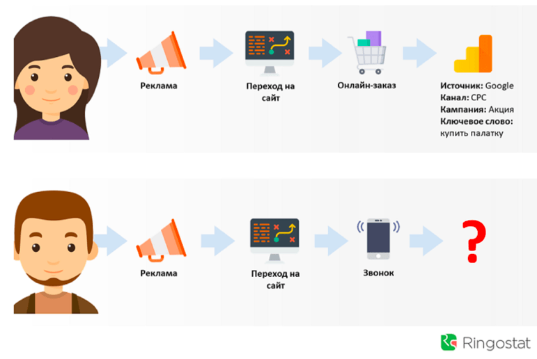 Отличие статического от динамического коллтрекинга показано на скриншоте сервиса Ringostat.