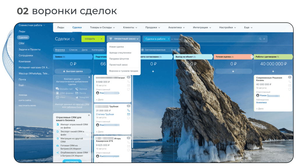 - Внедрили 3 воронки для различных направлений сделок с отличающимися стадиями