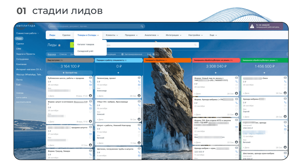 На первом этапе мы создали структуру компании, а далее стадии, которые помогают менеджерам компании отследить процесс работы с клиентом и остатки товаров на складах.