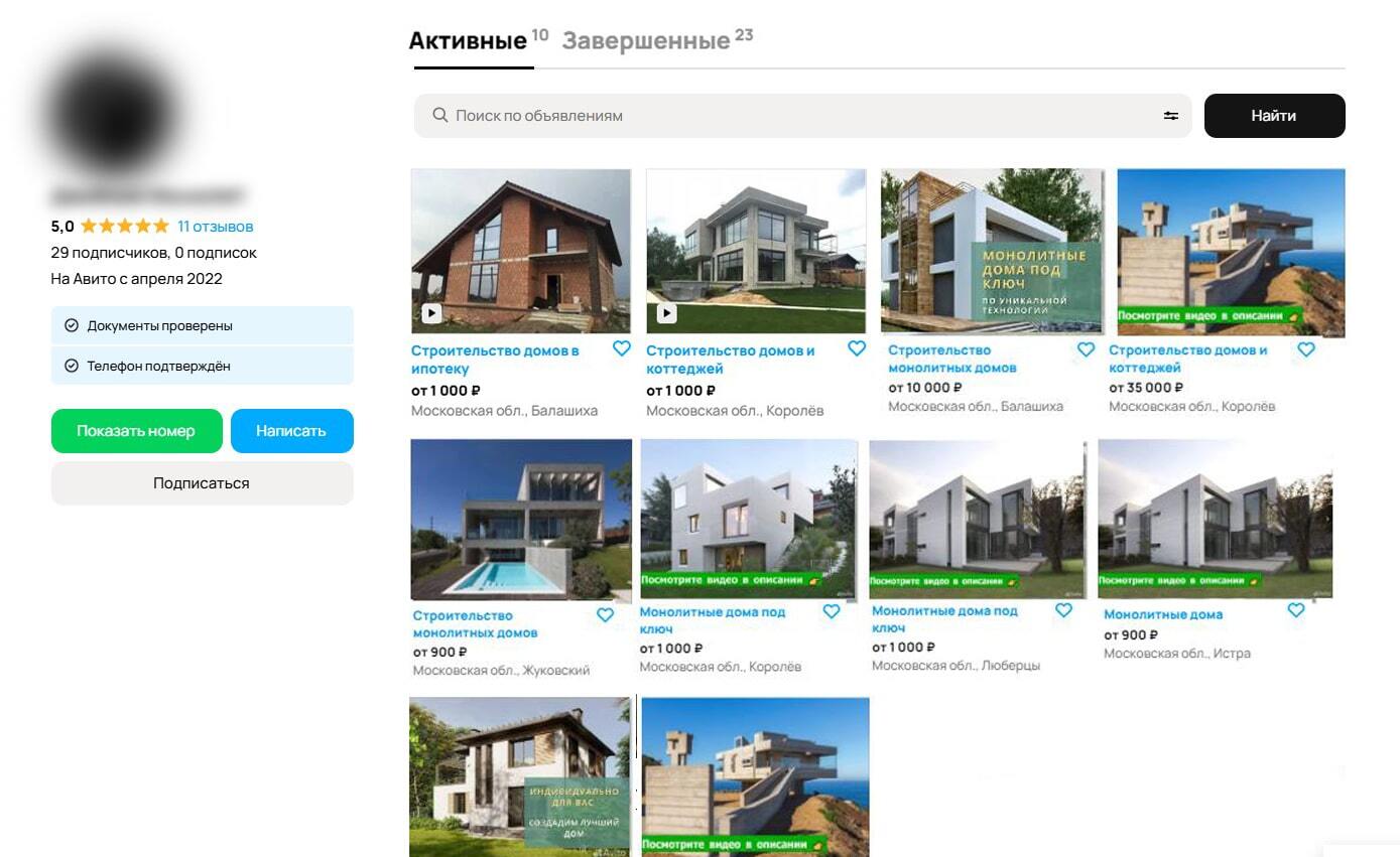 2. Объявления не продавали. Вместо описания преимуществ запатентованной технологии — шаблонные фразы («строим дома любой сложности»). Ситуацию ухудшали перегруженные текстом фотографии и отсутствие геопривязки к конкретным городам Подмосковья.
