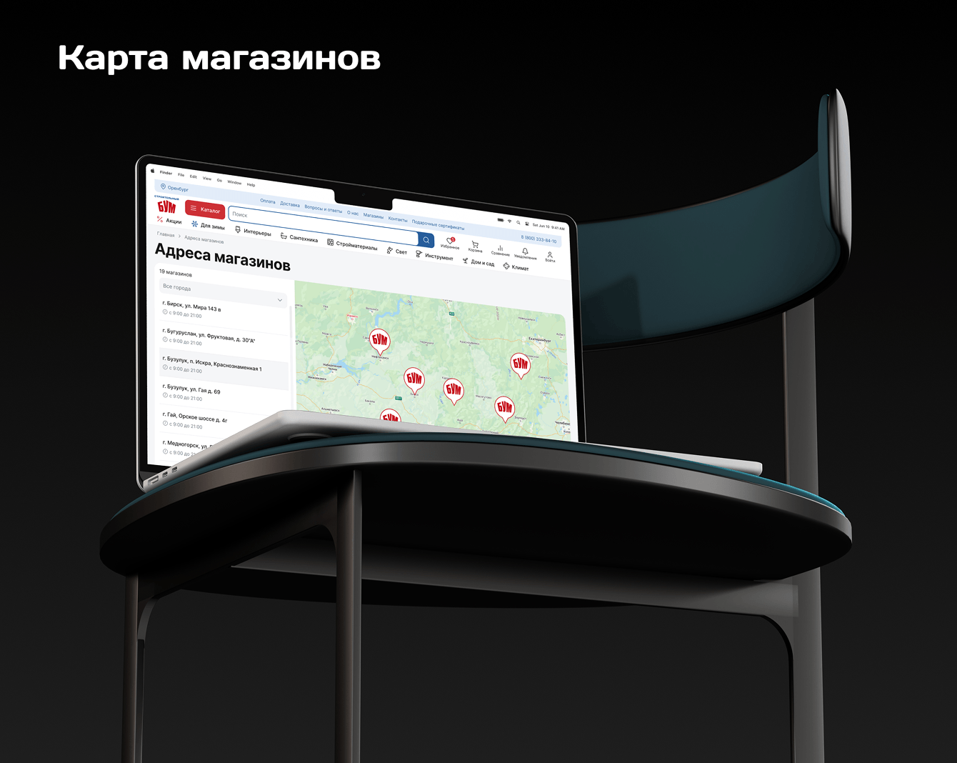 Подключили Яндекс Карты, чтобы магазины сети корректно отображались на сайте с актуальными адресами. Теперь покупатели могут проложить маршрут до ближайшего магазина прямо на сайте.