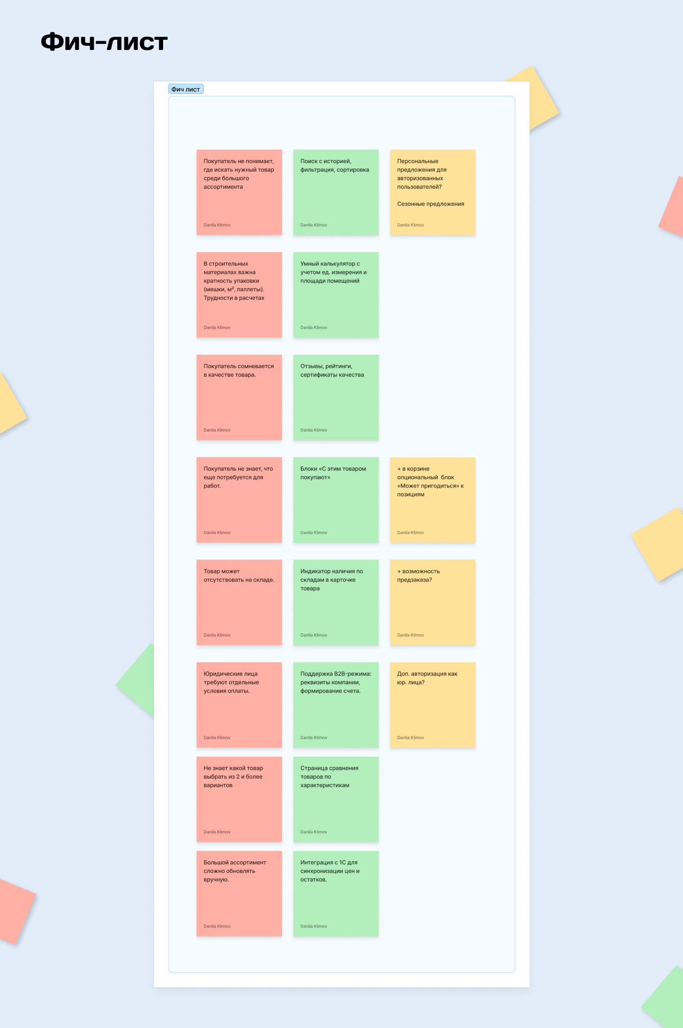 Выписали интересные решения и составили фич-лист (ниже скрин с частью анализа).