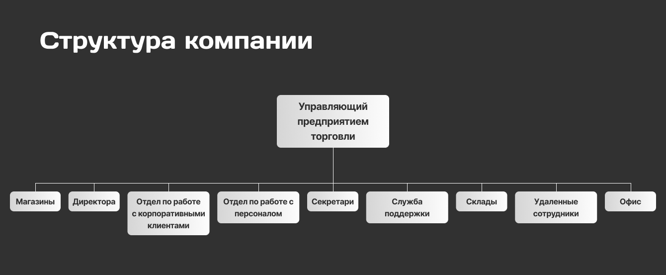 Сначала разобрались, кто за что в компании отвечает и как устроен отдел продаж. Задали очень много вопросов, погрузились в процессы и собрали структуру компании в наглядную схему. Вышли с сформулированными целями и четким пониманием того, как работает бизнес клиента.
