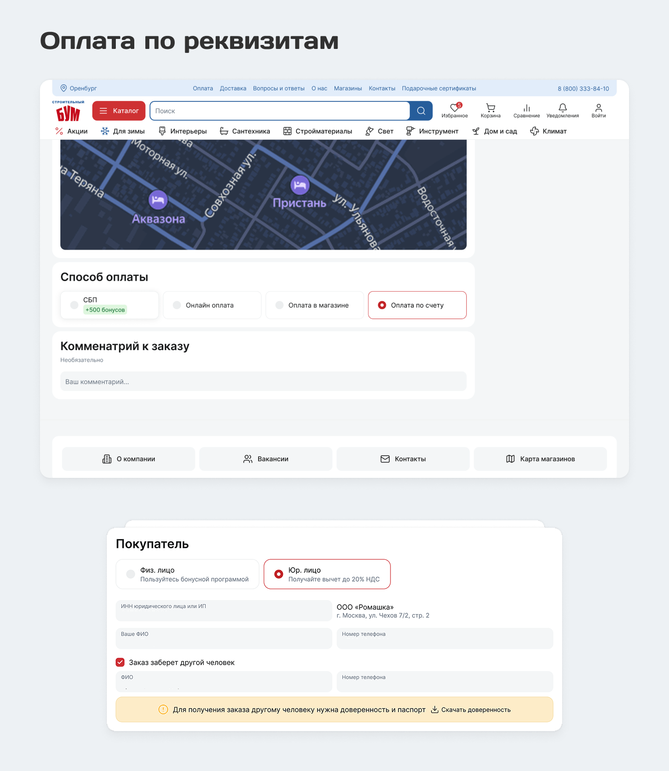 Добавили оплату по реквизитам и возможность добавления юридического лица в личный кабинет. В дальнейшем планируем апгрейд до полноценного B2B-кабинета с расширенным функционалом для корпоративных клиентов.