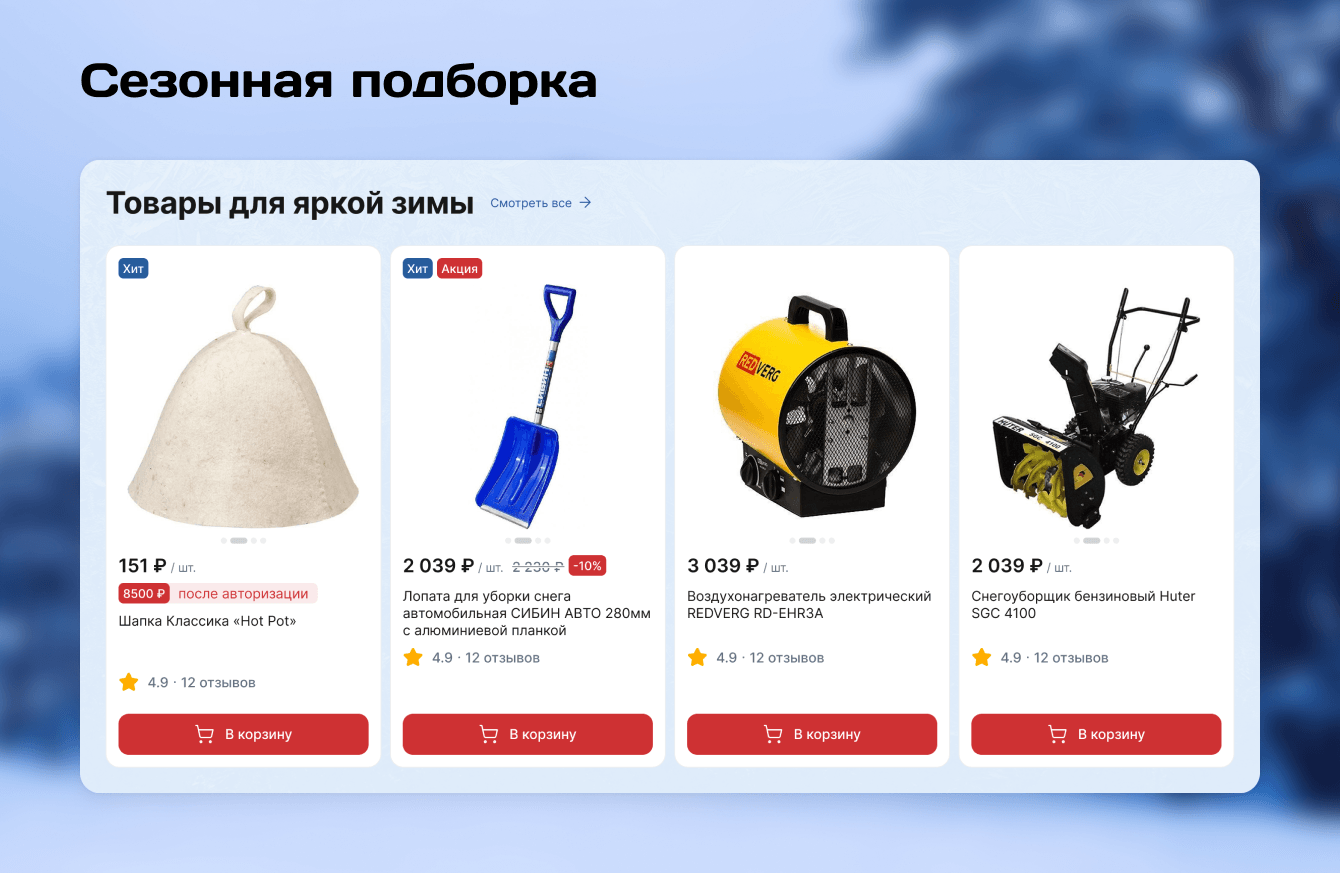 Для повышения лояльности добавили персональные предложения для авторизованных пользователей и сезонные подборки.