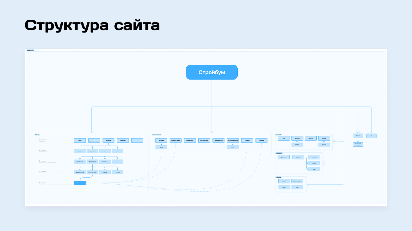 Дополнили фич-лист своими наработками, согласовали с клиентом и собрали новую информационную архитектуру сайта.