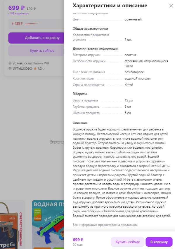 Пример заполнения описания карточки товара. Обычно после семантики для конкретного товара также были прописаны ключевые слова с названием магазина и для тематических праздников.