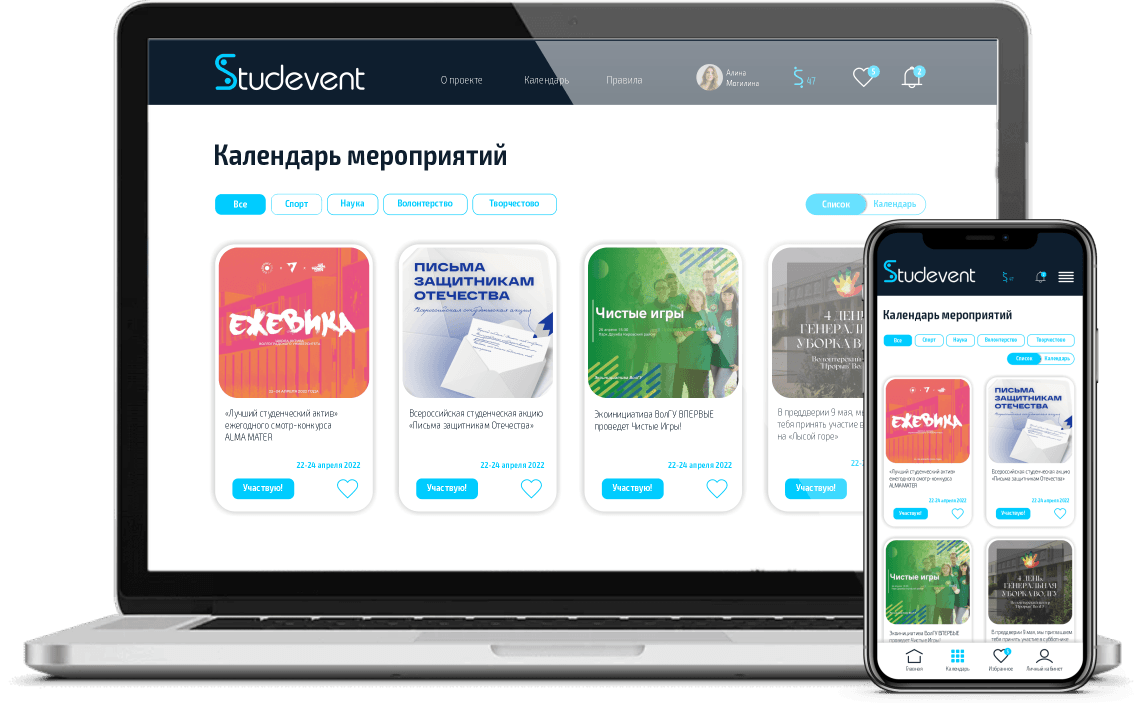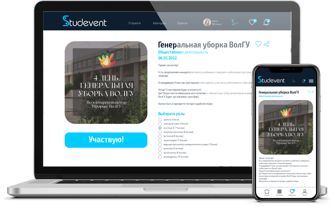 Проект предназначен для повышения активности участия студентов в мероприятиях регионального, федерального и международного уровня для Волгоградского Государственного Университета.