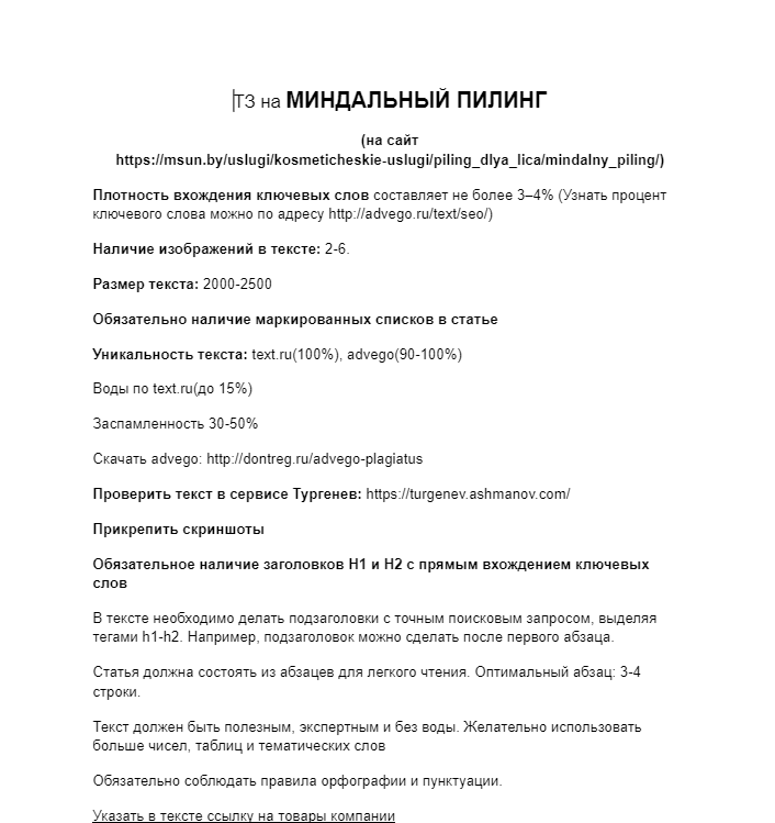 - Написание и оптимизация текстов для целевых страниц на основе семантического ядра.
